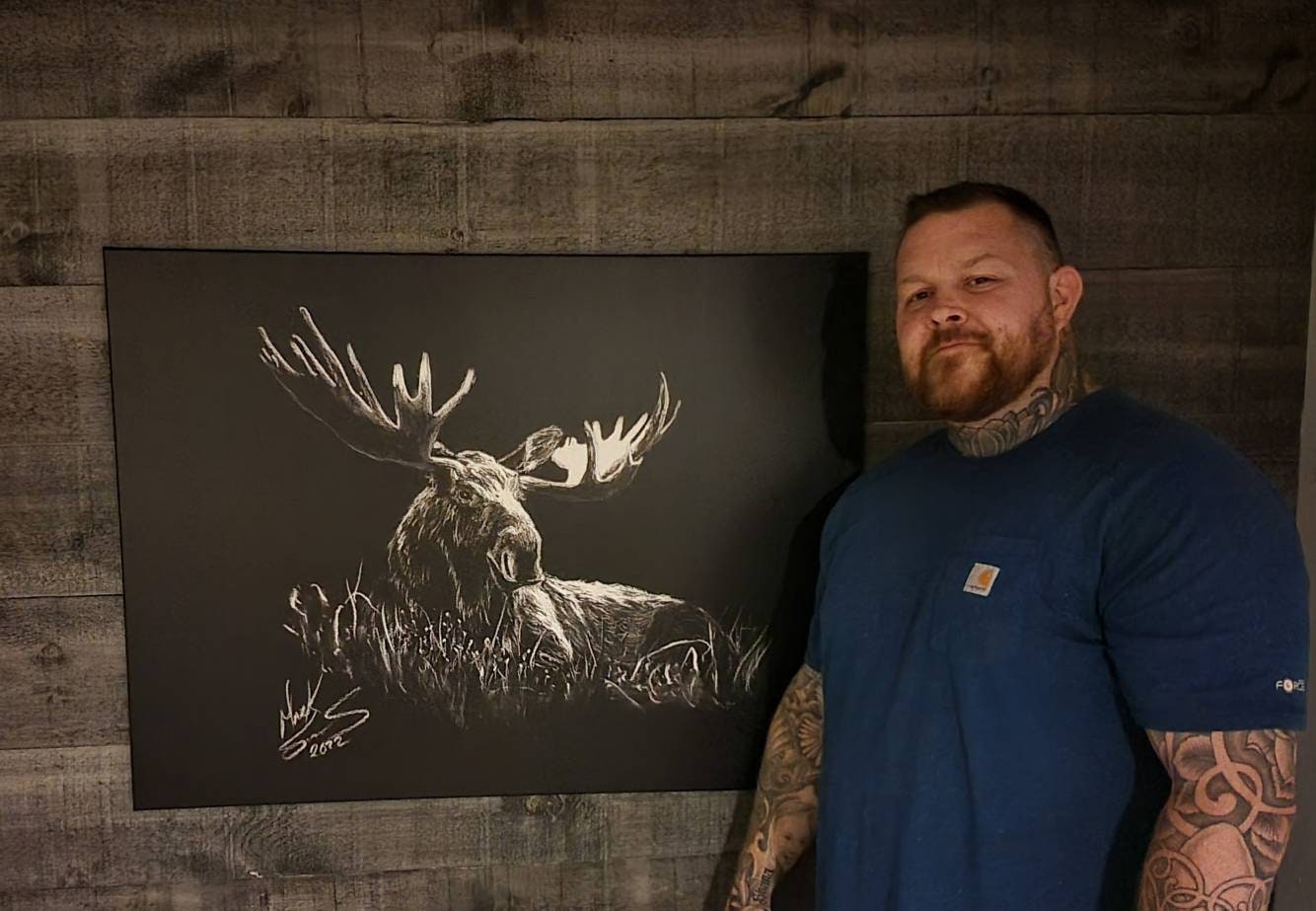 This Lazy Moose wildlife drawing was done in White charcoal on black paper.