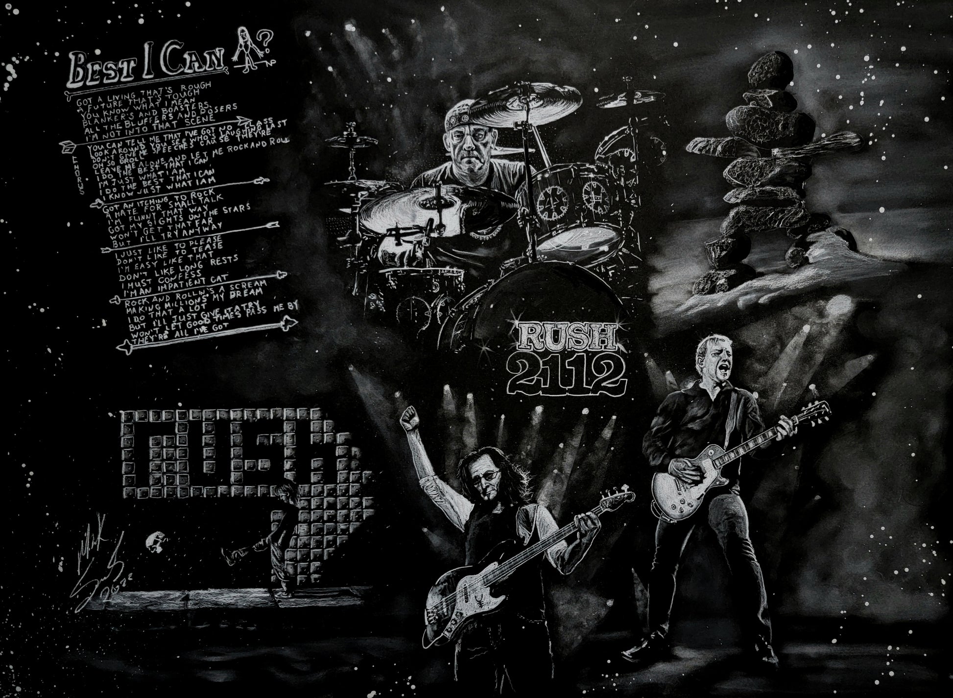 RUSH Tribute Charcoal Drawing: Rock Band Art Print or Canvas