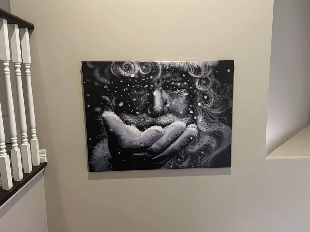 This piece looks amazing and is custom made to order with hand stretched canvas on a wooden frame and ready to hang upon delivery.