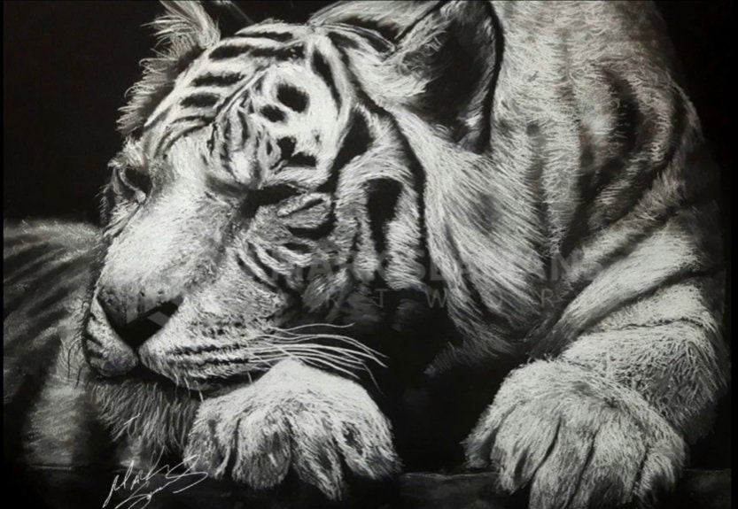 White Tiger Charcoal Portrait